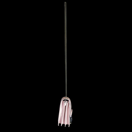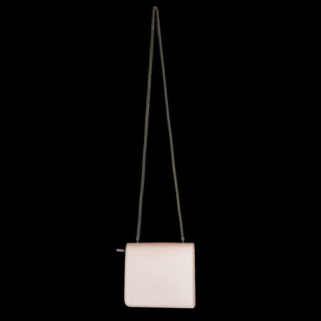 Ce modèle se distingue par son cuir de veau grainé couleur rose bonbon, sublimé par des lignes géométriques et un galbe affirmé. La chaîne argentée, d’une brillance subtile, se déclipse pour révéler une lanière frontale innovante : on le porte à l’épaule ou à la main selon son humeur. La fermeture tuck en métal, finement gravée du logo Julien Fournié Haute Couture, affirme son appartenance à l’univers couture le plus exclusif.
