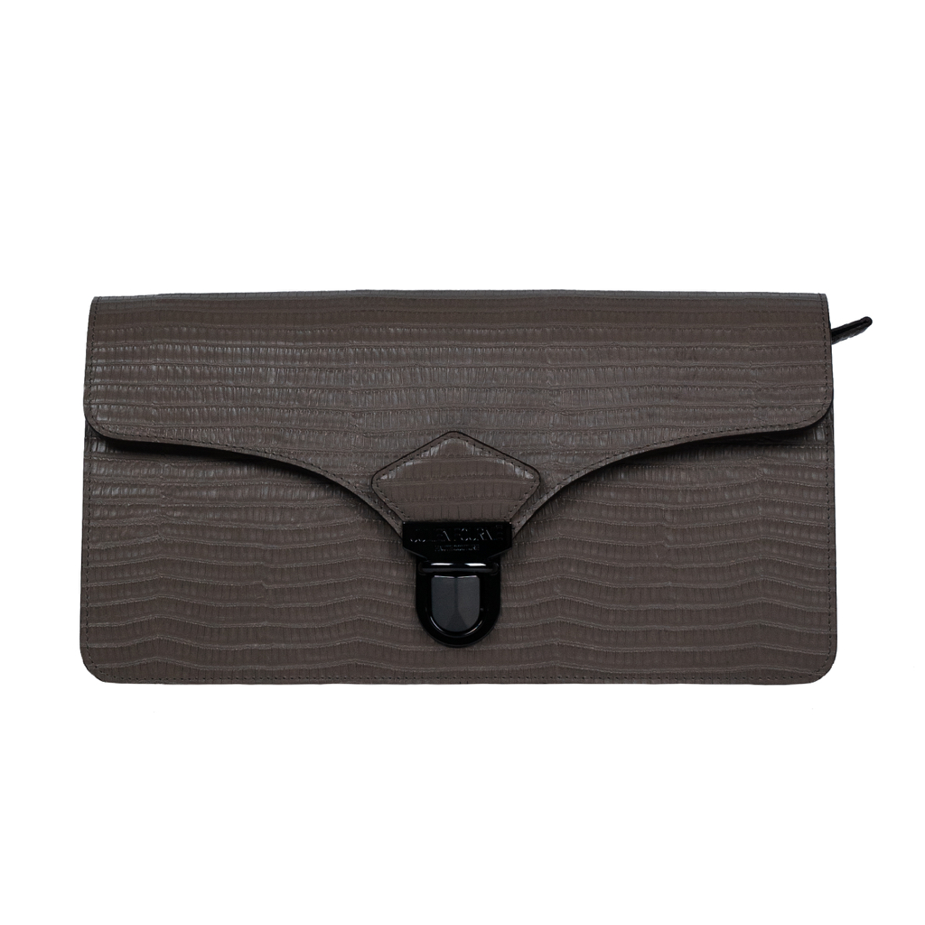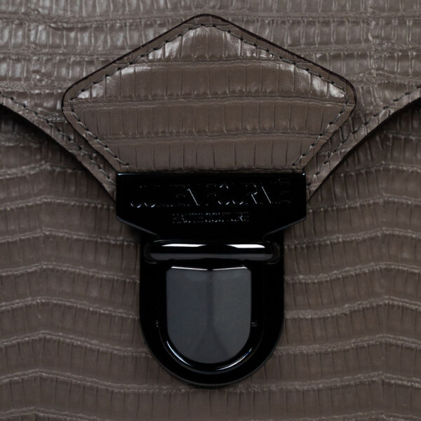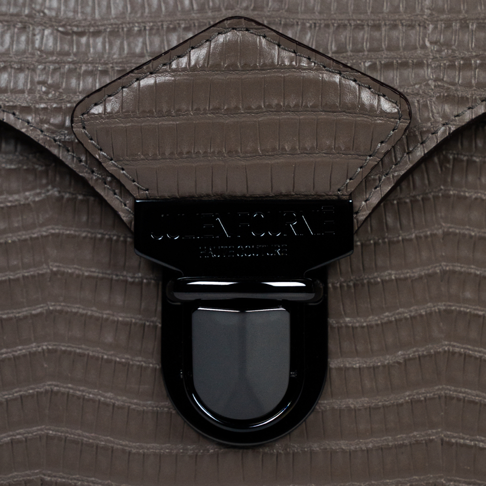 Un fermoir tuck couleur canon de fusil et siglé lui donne son caractère au Sac Mercure.