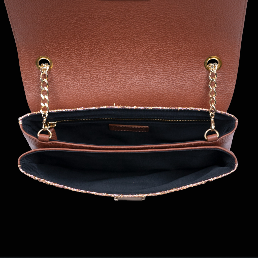 Entrez dans une dimension éclatante avec le sac Premier Laser Game Goldie Pink, où la lumière devient matière. Cette pièce exceptionnelle est réalisée dans un somptueux jacquard lurex rose doré, tissé sur une base de fils de soie, développé exclusivement pour la Maison Julien Fournié. Un textile hypnotique, aux reflets vibrants, qui capture chaque éclat avec intensité.