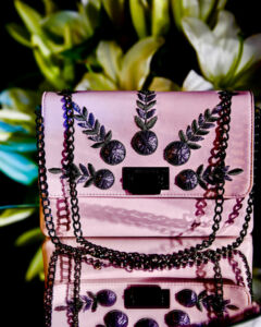Lors de la présentation de la collection, la tenue était complétée par le sac à main Premier Academician.