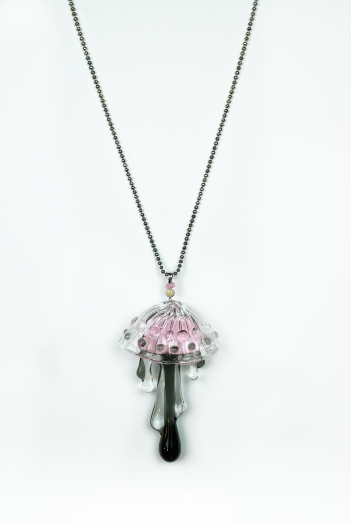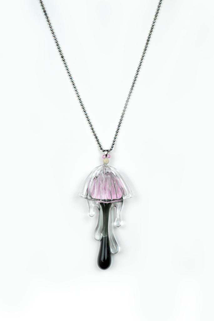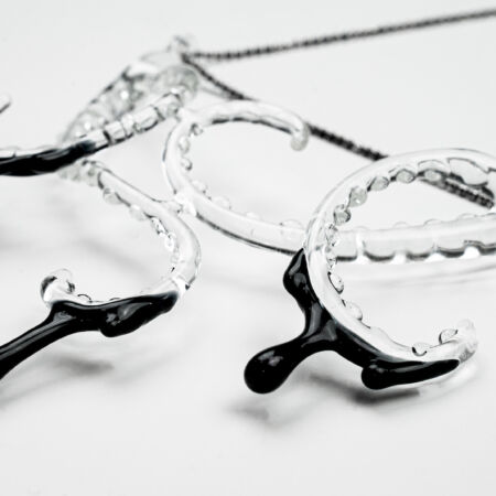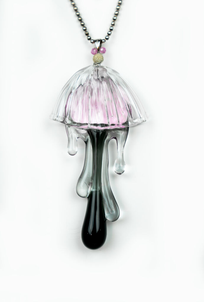 Julien Fournié a ainsi imaginé une série de bijoux pendentifs pour la collection de Haute Couture First Creatures dont les spectaculaires tiare et harnais portés par la "Dark Mermaid". Julien Fournié a fait appel à Adrian Colin pour donner vie à ses créations en verre soufflé. Adrian Colin est Meilleur Ouvrier de France 2011 et Directeur adjoint commission métiers d'art MOF. Il est verrier au chalumeau à Dinan. Il exécute ses oeuvres à base de baguettes et de tubes de verre qui sont fusionnés.