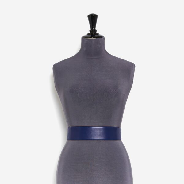 La Ceinture Lazulli incarne l’essence même du détail couture devenu sculpture. Façonnée en agneau plongé bleu Klein au grain velouté et à la souplesse seconde peau, elle structure la silhouette avec une précision architecturale. Son bord net, tranché puis laqué d’un beige nude délicat, offre un contraste graphique saisissant posé sur un collet rude qui renforce son caractère audacieux.