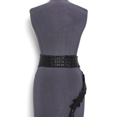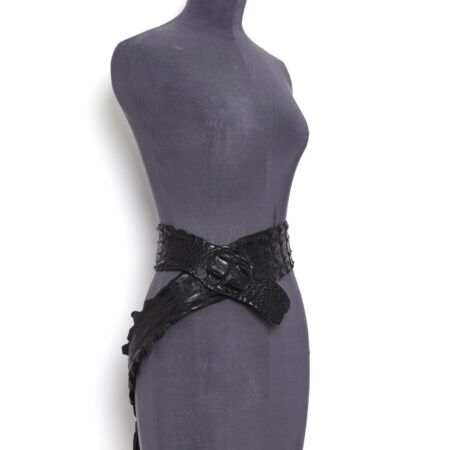 Cette Ceinture Haute Couture est en alligator véritable noir.