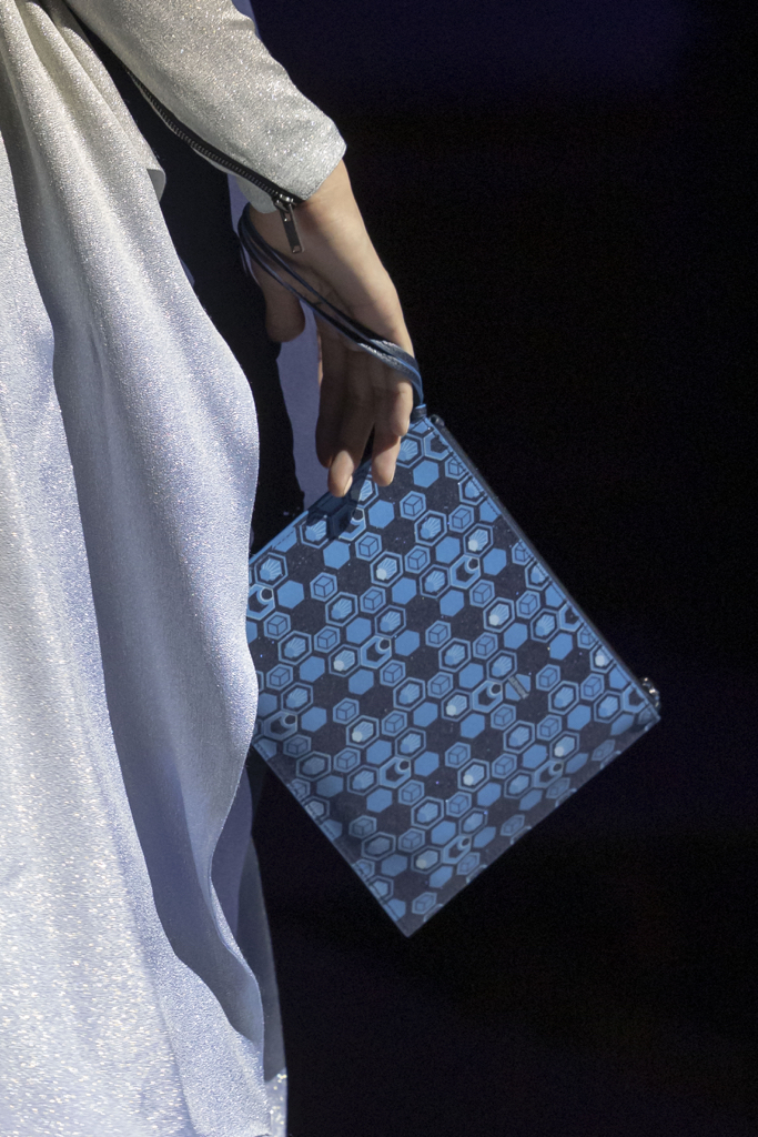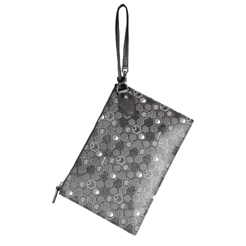 À chaque éclat, la lumière danse sur le monogramme Hexagon, hommage à l’infini ballet des alvéoles d’abeille et à une vision cosmique qui transcende l’ordinaire. Que vous la glissiez sous votre bras pour un rendez-vous en ville ou que vous la passiez à la main en soirée, cette pochette de luxe affirme son caractère couture.