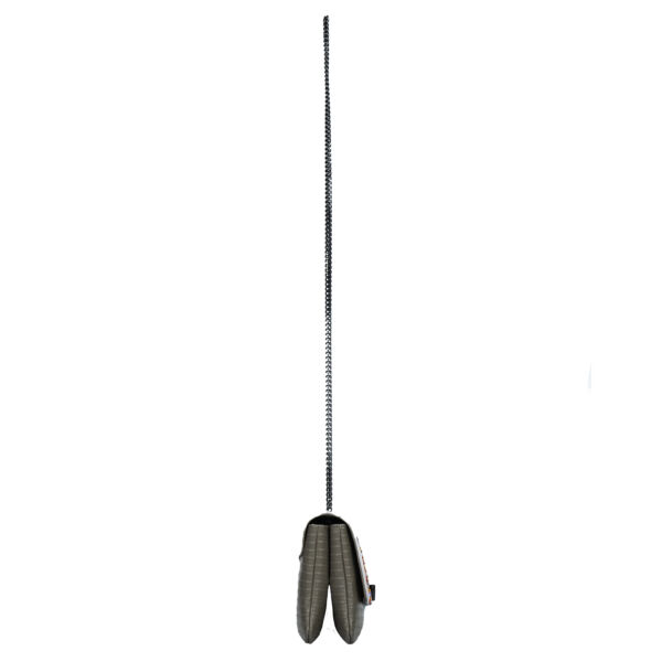 La chaîne amovible et ajustable (121 cm), ainsi que les métalleries dorées, confèrent au sac une allure précieuse et versatile, permettant de le porter à l’épaule, en bandoulière ou à la main.