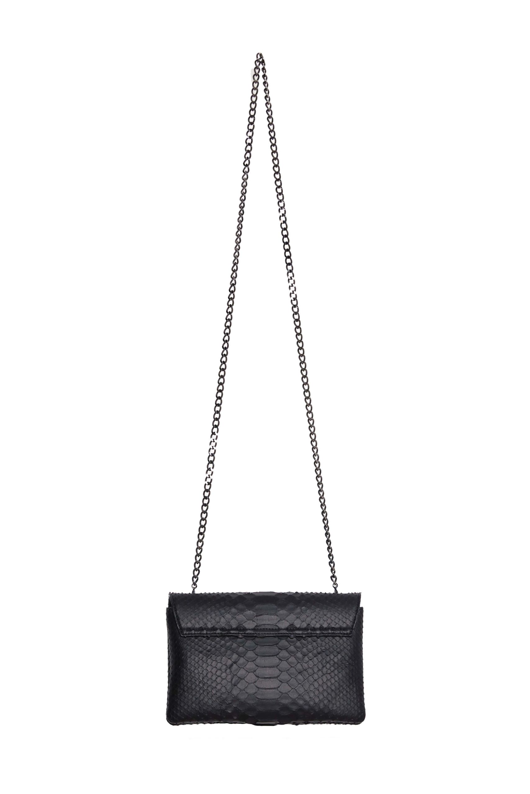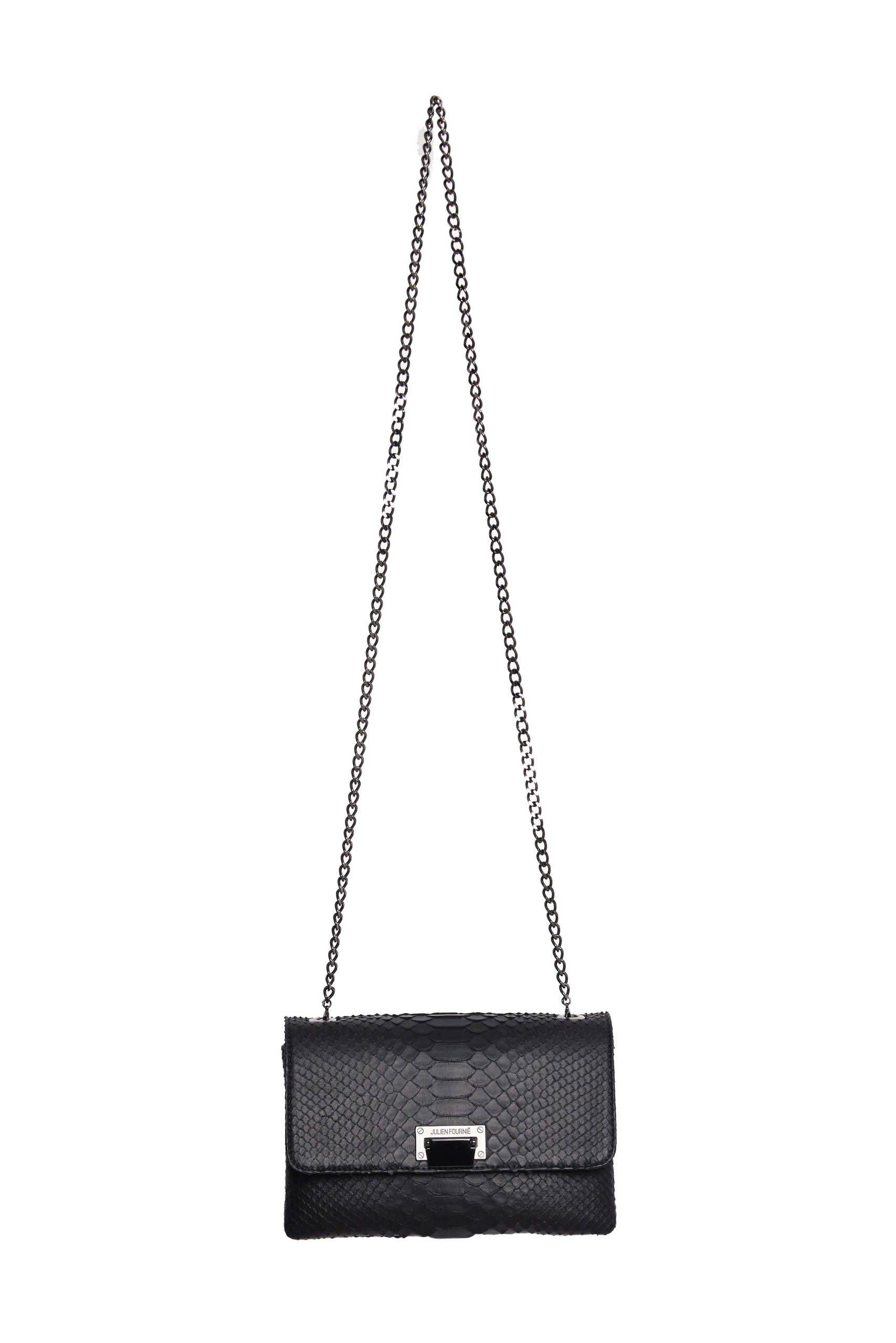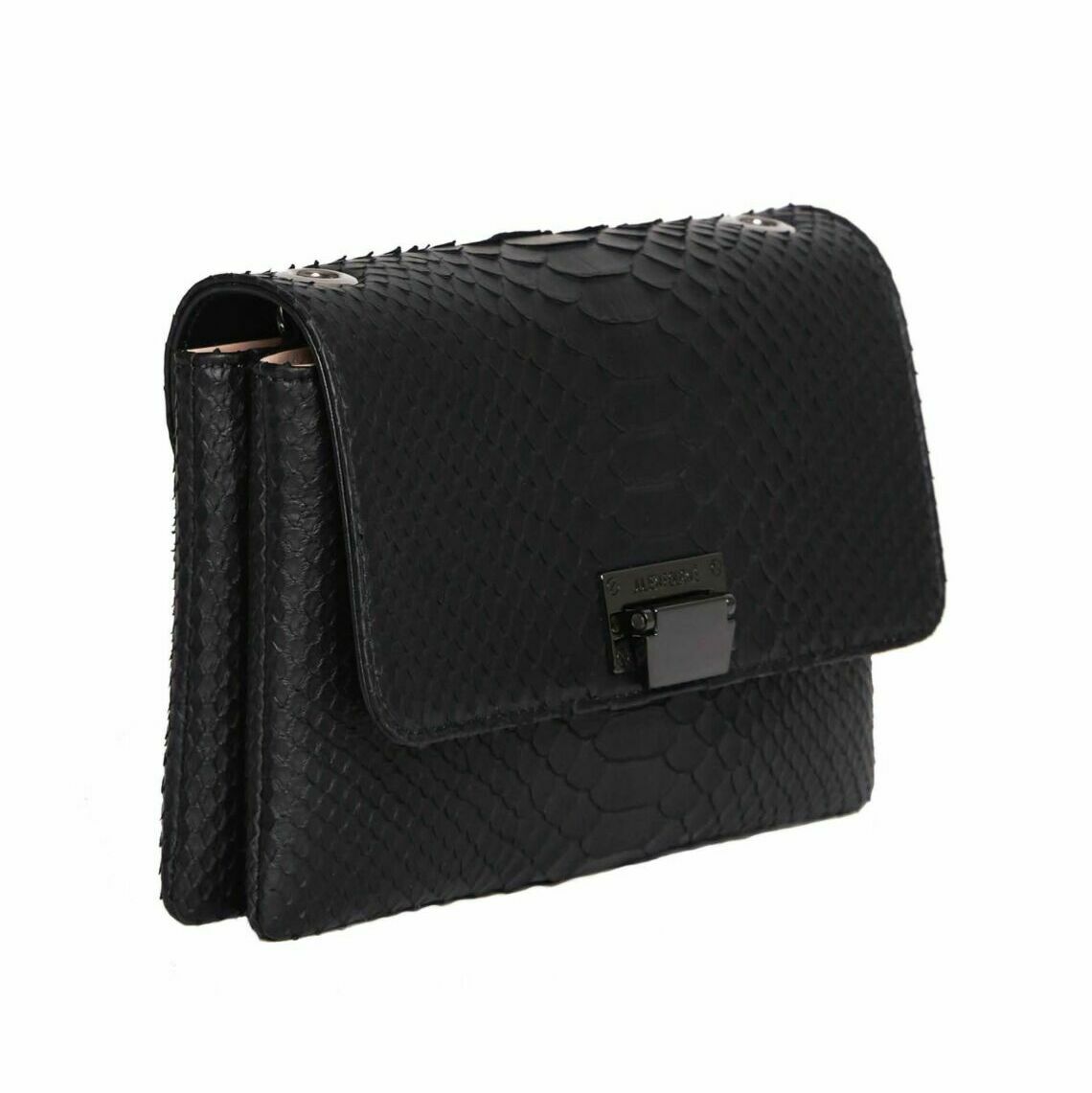 Ce sac à main noir bandoulière est en Python véritable.