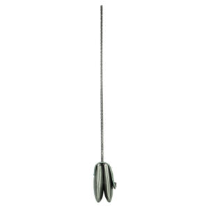 La chaîne amovible et réglable (longueur 121cm) et les métalleries sont de couleur « canon de fusil ».