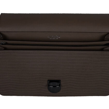Cette Baguette est en cuir chocolat embossé façon lézard.