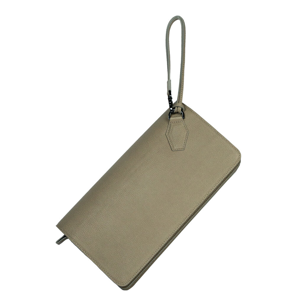 Le Sac Mercure se porte sous l’épaule ou avec sa discrète dragonne.