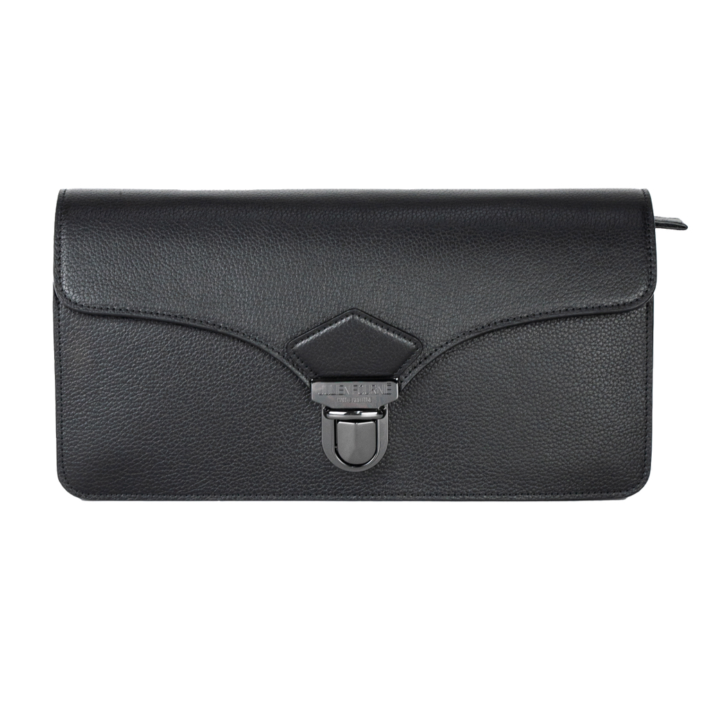 Un fermoir tuck couleur canon de fusil et siglé donne son caractère au Sac Mercure.