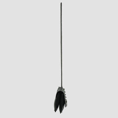Conçu en métal et sublimé par une marqueterie de pierres fantaisie rubis et de finitions vieil argent, cette aumônière-sautoir incarne le raffinement et l’audace créative de la Maison Julien Fournié.
