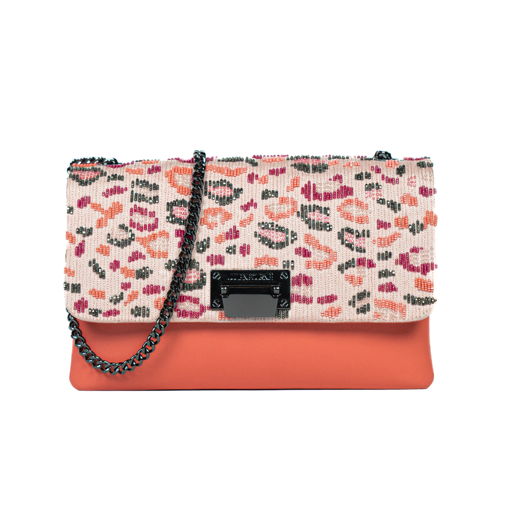 Ce sac bandoulière est polyvalent. Ce sac Haute Couture se transforme en pochette de soirée grâce à sa chaîne amovible, sac Cross Body, ou se porte sous l’épaule