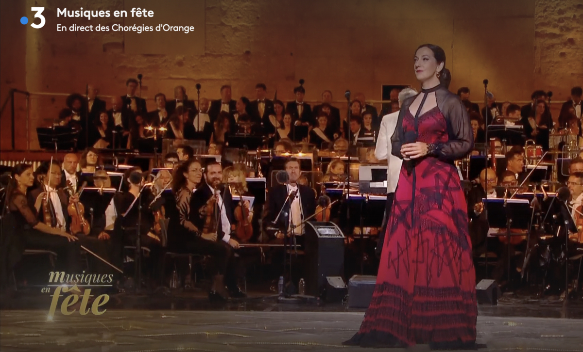 Marina Viotti a porté plusieurs robes Haute Couture créées par Julien Fournié à Musiques en fête, une émission retransmise en