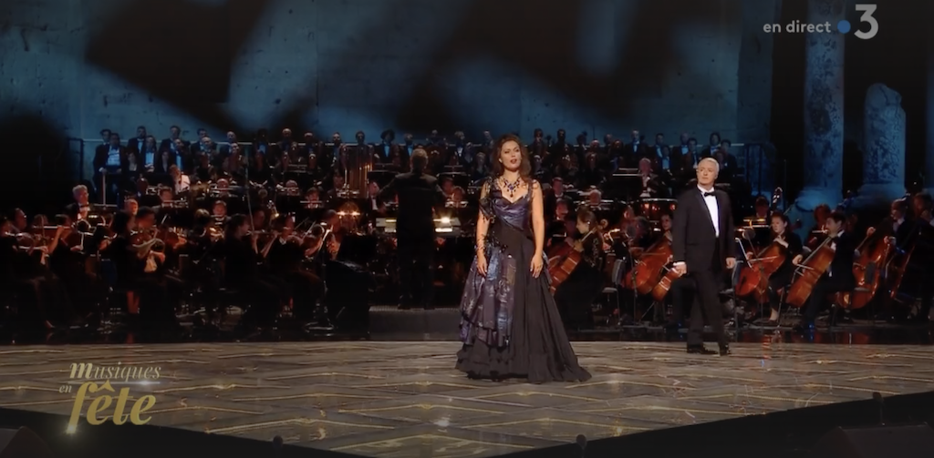 Marina Viotti a porté plusieurs robes Haute Couture créées par Julien Fournié à Musiques en fête, une émission retransmise en
