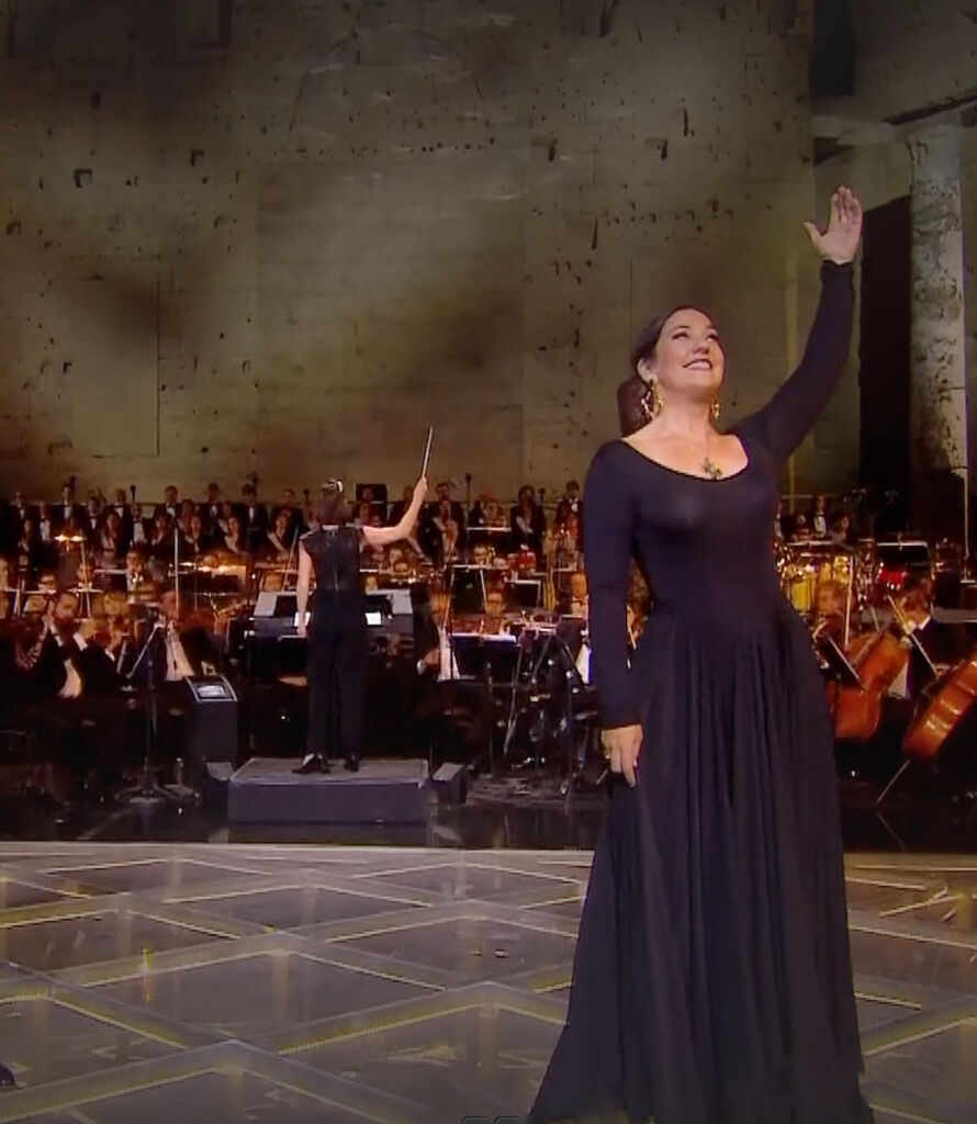 🇬🇧 Héloïse Mas était en Julien Fournié Haute Couture devant les quelques 8000 spectateurs du Théâtre antique d Orange, lors