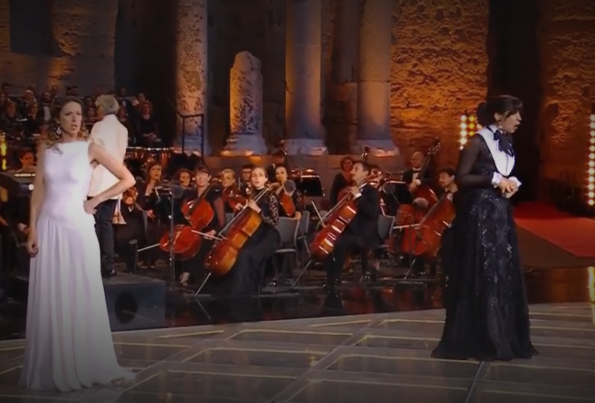 Les deux sopranos ont interprété « Le duo des chats », une pièce généralement attribuée à Gioachino Rossini mais qui n’a, en fait, pas été écrite par lui, mais consiste en une compilation écrite en 1825 reprenant, entre autres, des passages de son opéra de 1816 Otello. Elles étaient accompagnée par l’Orchestre national de Cannes sous la direction de Didier Benetti.