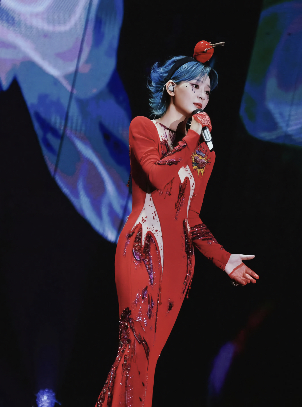 周笔畅身着 Julien Fournié 高级定制礼服,为深圳演唱会献上华丽亮相。