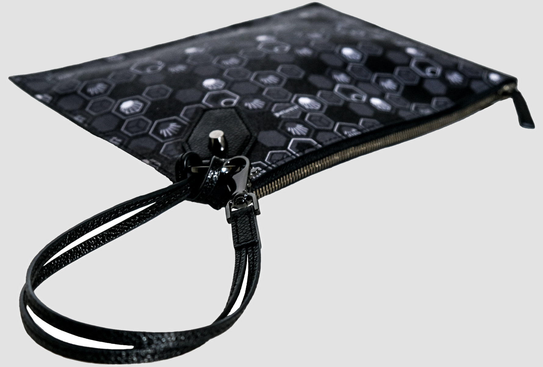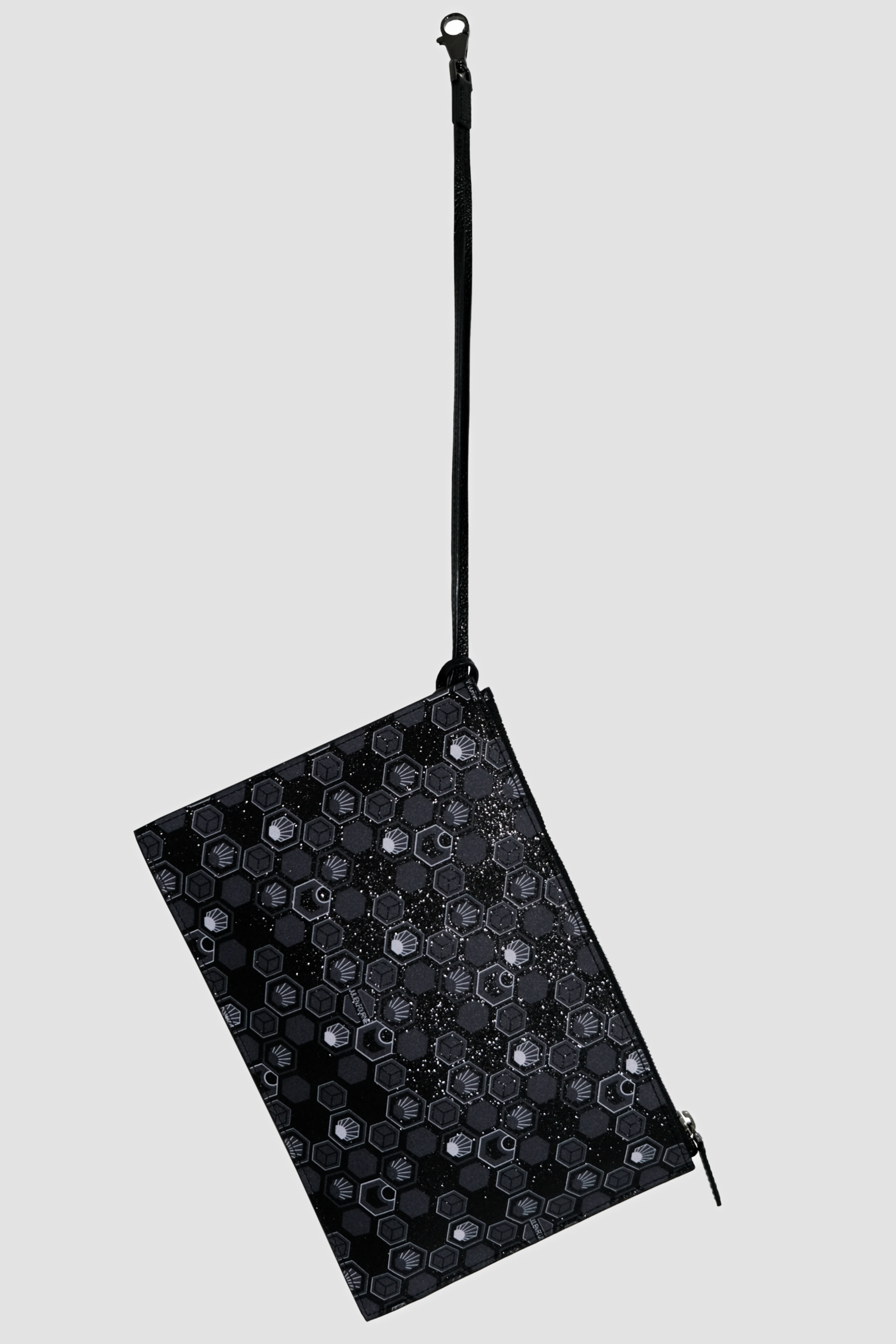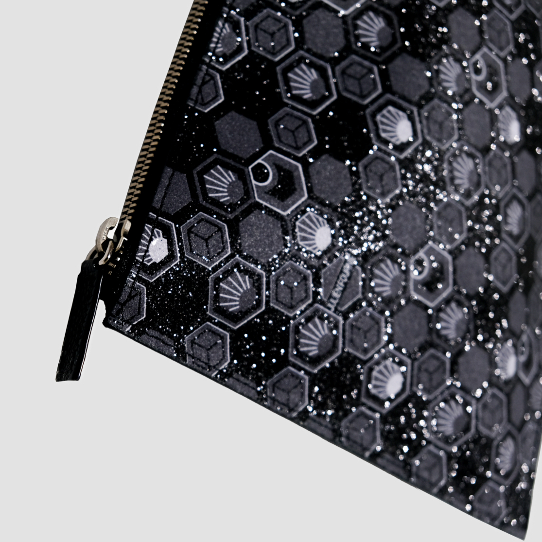 Designed for a life in motion, the clutches come in coated canvas adorned with the hand‑screen‑printed Hexagon monogram or in full‑grain leather. A removable shoulder strap allows for shoulder or hand carry, while the format holds the essentials with lightness and refinement. The interior, lined in black poly‑cotton, ensures both protection and comfort for your personal items.