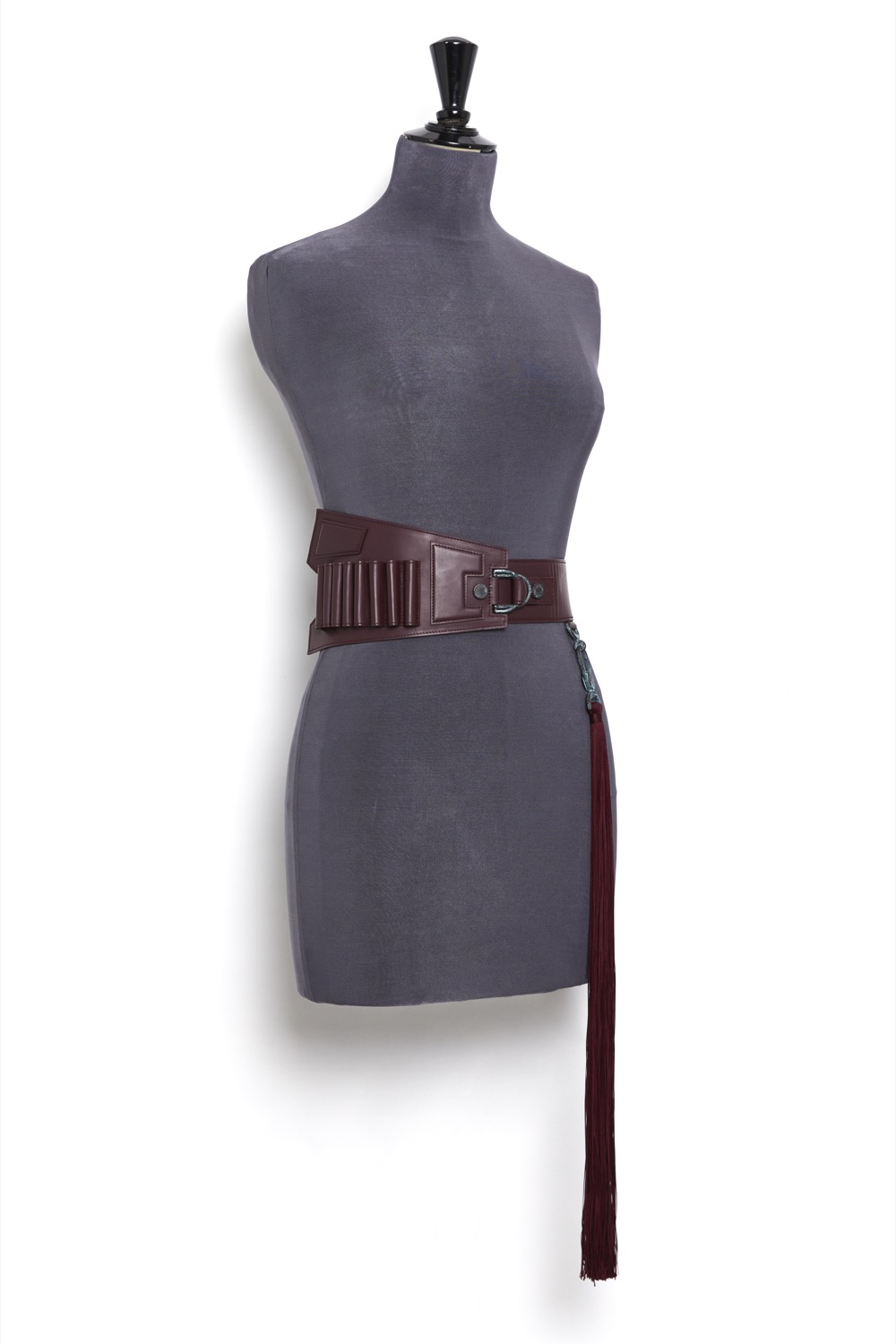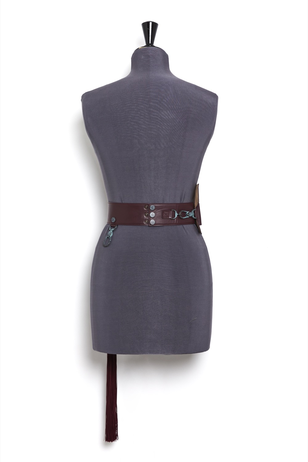 Haute Couture belt with removable cartridge belt in smooth Burgundy lambskin on a nude tone-on-tone overstitched collar, with a bright lacquered edge finish.