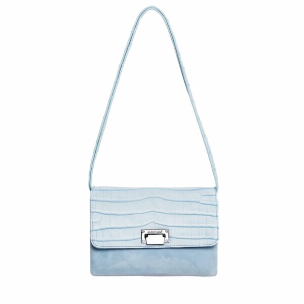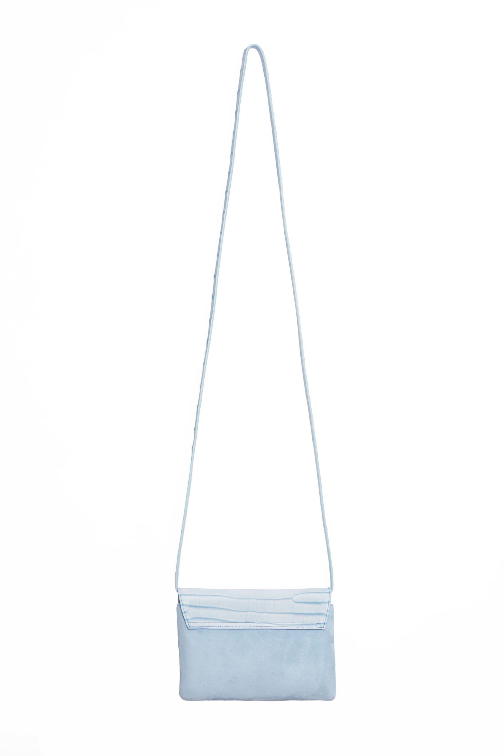 • Discreet gunmetal hardware lends a contemporary coolness that echoes the Glacier-Blue hue.