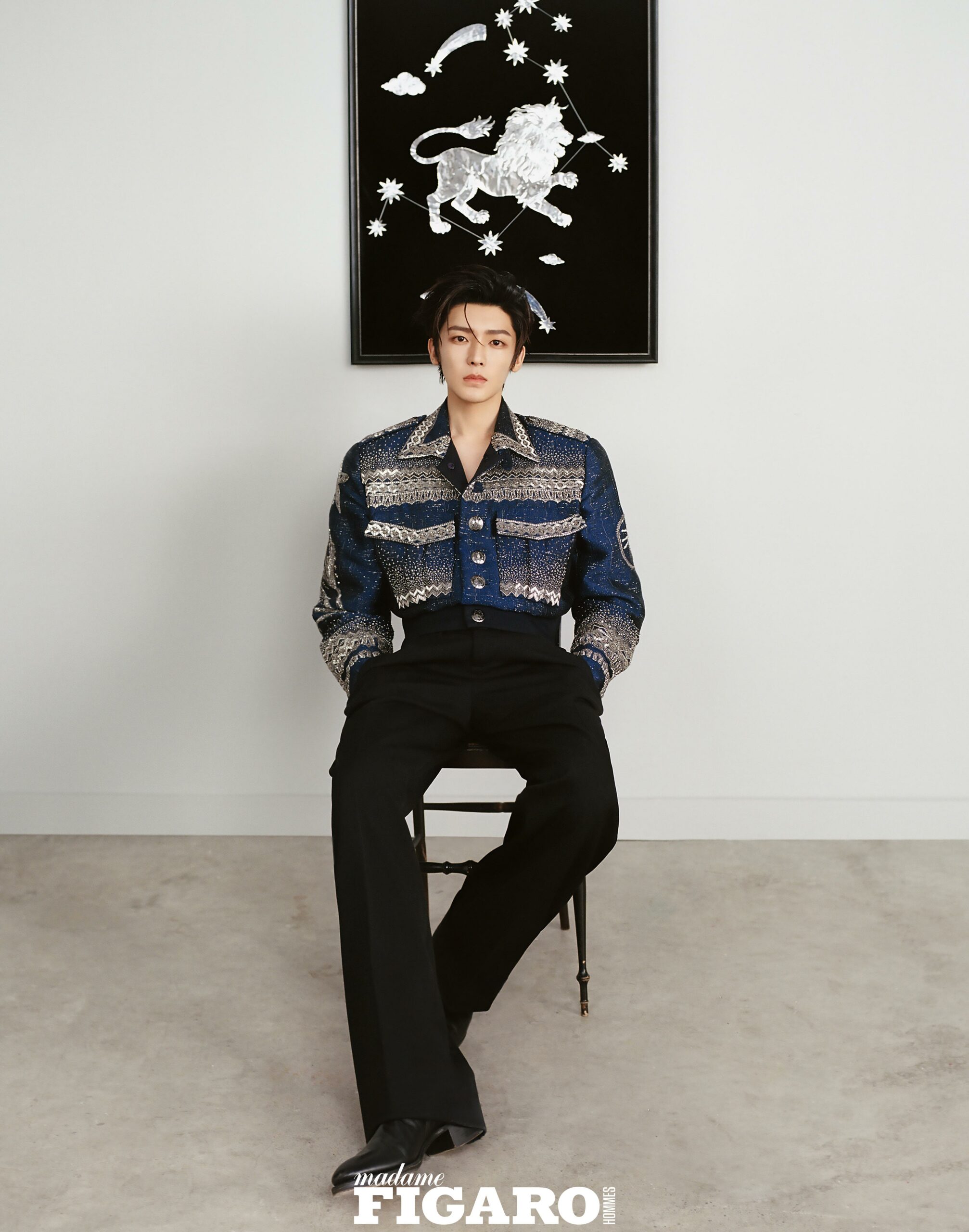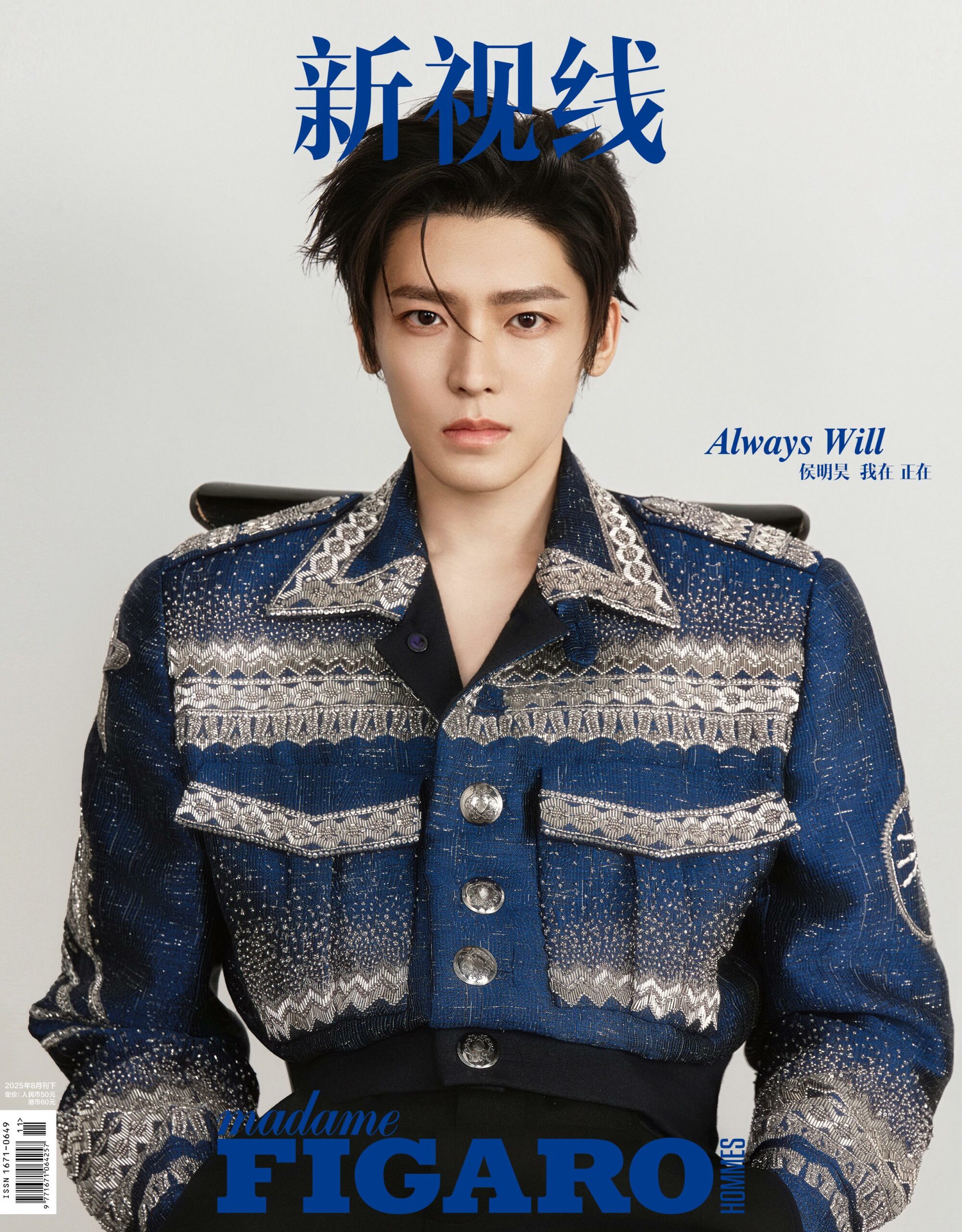 For the cover of Madame figaro Hommes, Hou Minghao wears a Julien Fournié creation.