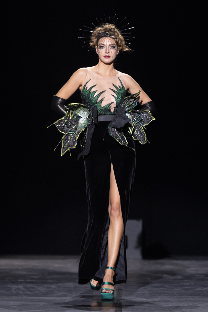 Jin Chen wears a dress from the First Vamps Haute Couture Collection.