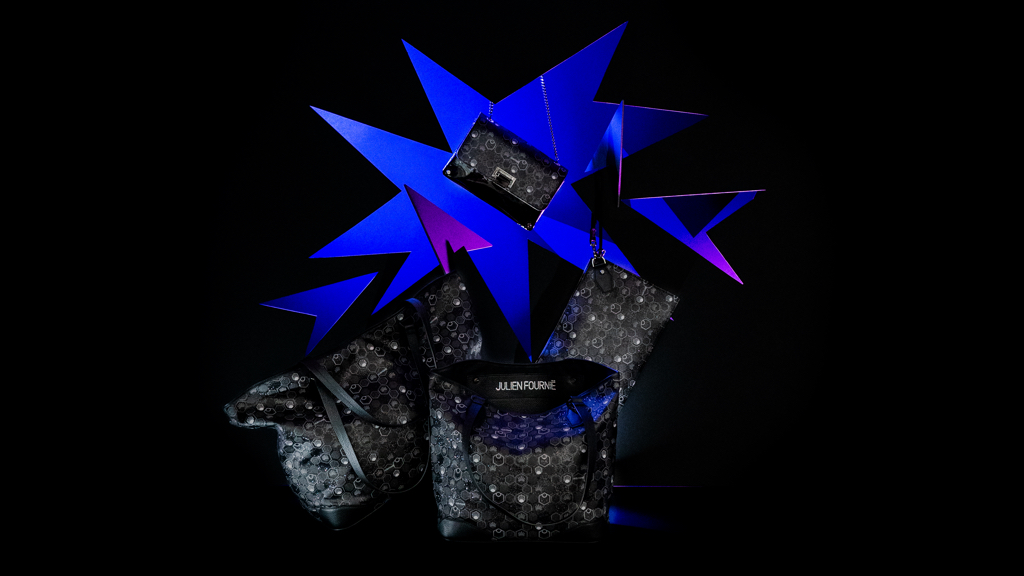 These new luxury bags feature a new fabric, Laser Game, originally developed for Maison Julien Fournié by Sfate & Combier.