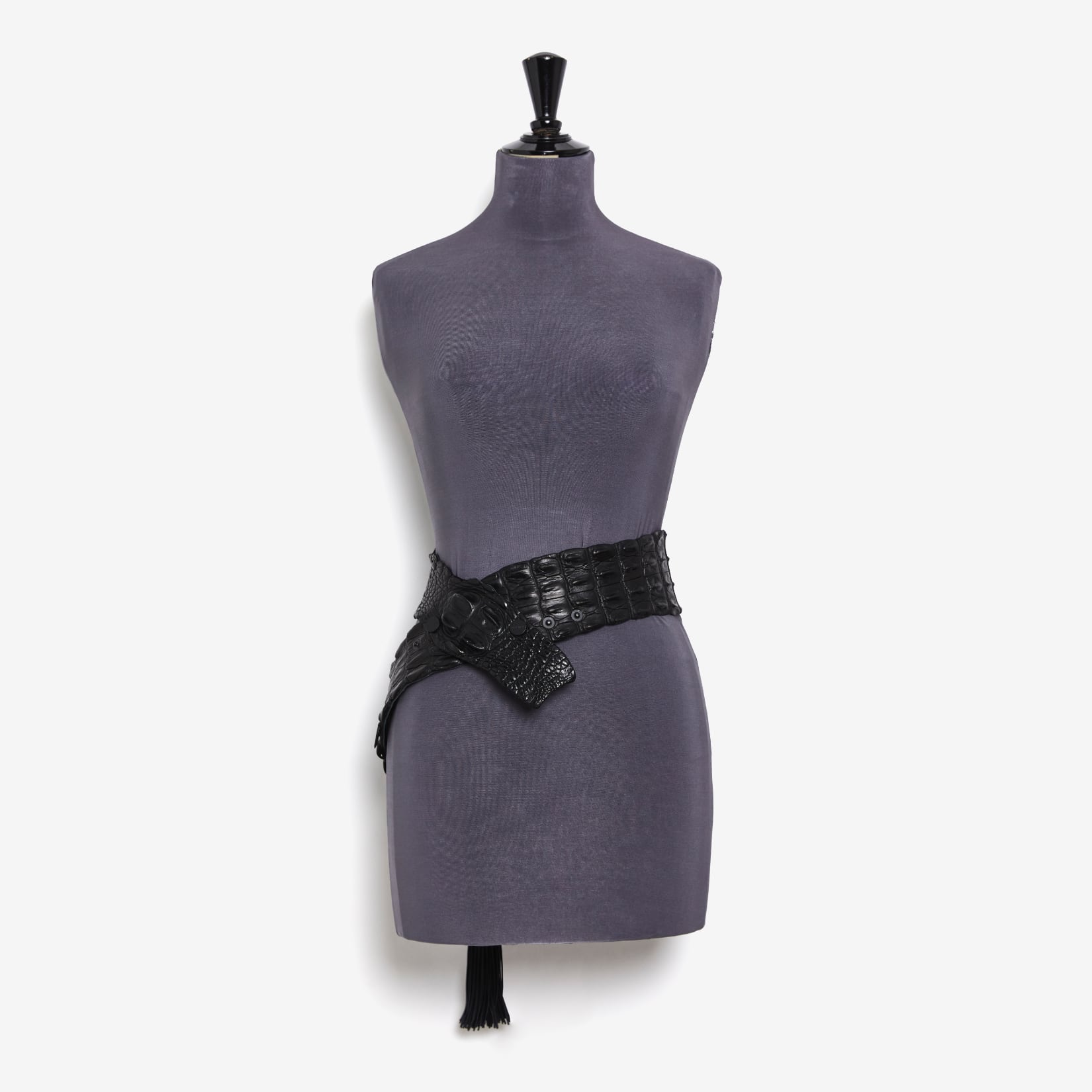 Haute Couture belt in black genuine aligator. This belt is handmade in one piece only.