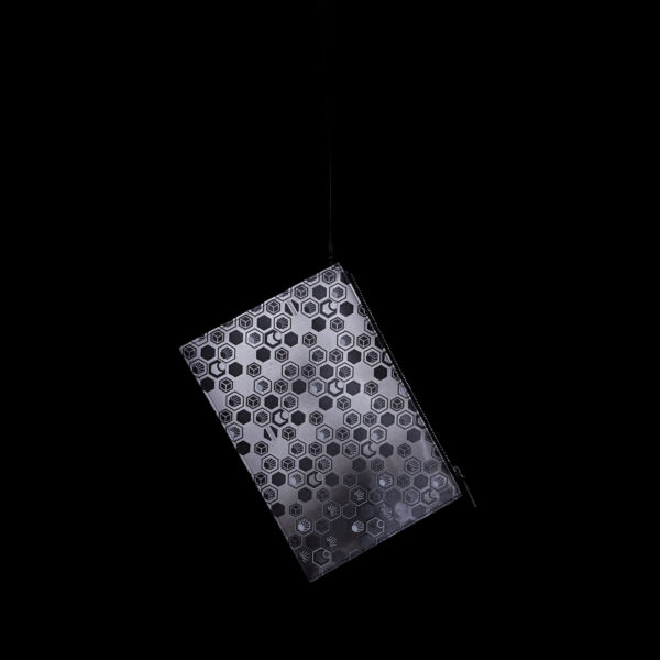 – Hand-screened Hexagon monogram, a celestial symbol and house signature
