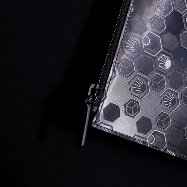 Unveiled during the First Circus Haute Couture runway show, this elegant piece is dressed in supple, luminous silver-coated canvas, silk-screened with the exclusive Hexagon monogram designed by the couturier himself.