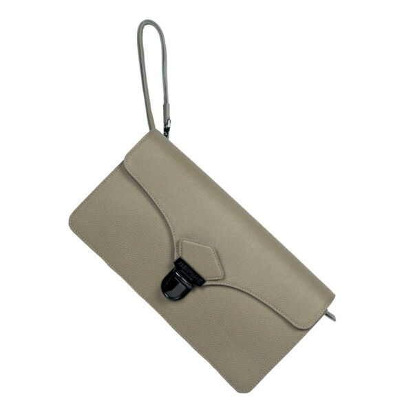A discreet and solid leather strap allows to wear this bag on the wrist.