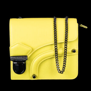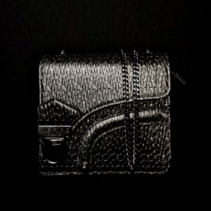 • Designed to be worn over the shoulder with a refined silver chain, or by hand using the unique integrated front strap – an avant-garde gesture that enhances the silhouette