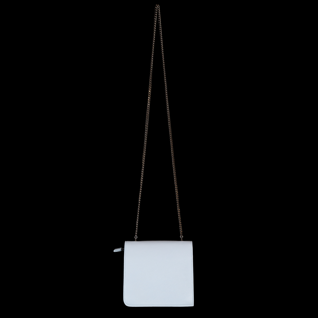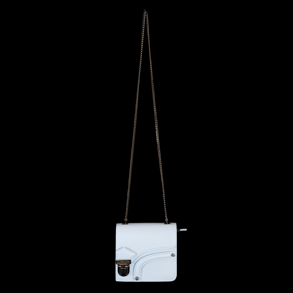 – Versatile carry: subtly gleaming silver chain, detachable for hand carry via an innovative front strap.