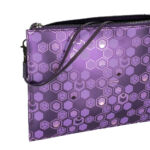 • Removable purple calf leather wrist strap— transforms into an evening clutch in a single gesture