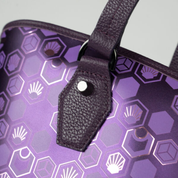 • Double handles and base reinforcements in purple grained calf leather, marrying structure with a supple touch