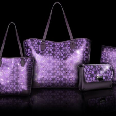 Discover the chromatic audacity of the Saturne tote, sculpted from mirror-effect Deep Purple coated canvas that captures light like a twilight gemstone. Each surface shimmers with violet undertones, while the exclusive Hexagon monogram—Julien Fournié’s signature—floats like a constellation motif.