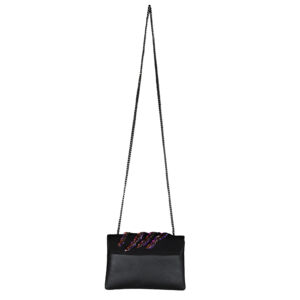 The 121 cm removable chain adjusts to your preference and is plated in gunmetal, accentuating the piece’s modernity. With a single gesture, it detaches to transform this luxury bag into a sophisticated clutch.