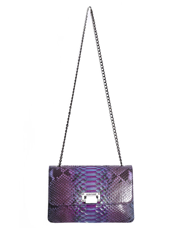 • Removable 121 cm chain, wrapped in python and finished with gunmetal accents