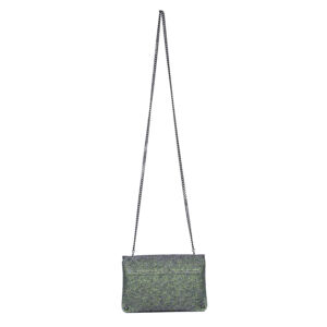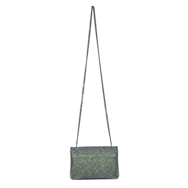 Velour-leather panels and a removable, adjustable 121 cm chain with gunmetal-finish hardware underscore its rock-chic spirit.