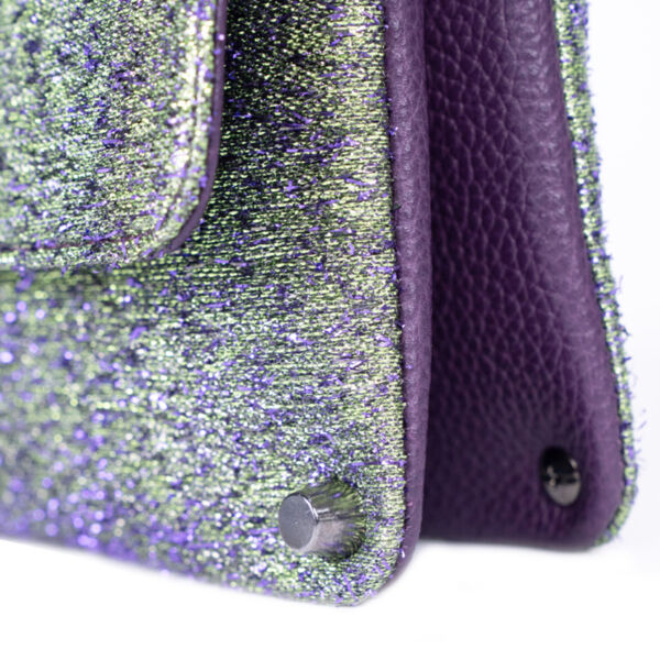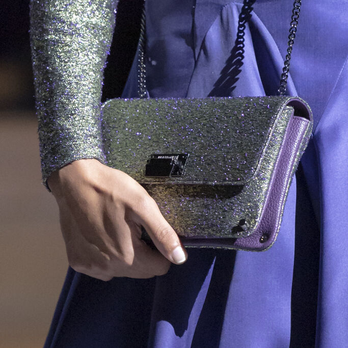 Immersed in a subtle play of light, the Premier Bag is dressed in “Laser Game,” an emerald lurex jacquard with violet nuances, woven on an exclusive silk-thread ground.