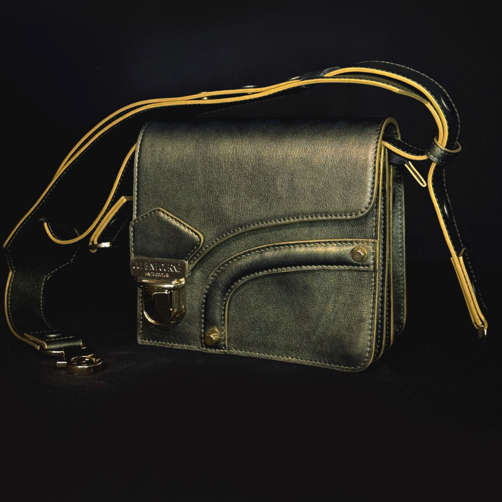 The new luxury bag designed by Julien Fournié and presented at the First Circus Haute Couture fashion show. This handbag is available in Khaki leather with a Bronze finish.