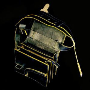 – Compact design: silhouette inspired by the Mercure baguette bag, as if “sectioned” to retain only the essentials.