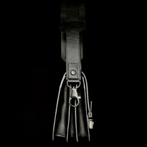 – Versatile carry: subtly gleaming silver chain, detachable for hand carry via an innovative front strap.