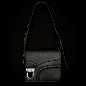 Clad in deep black leather, this model is defined by flawless finishes: the Julien Fournié Haute Couture logo is subtly embossed on the metal clasp, and the thoughtfully arranged interior pockets blend utility with refinement.