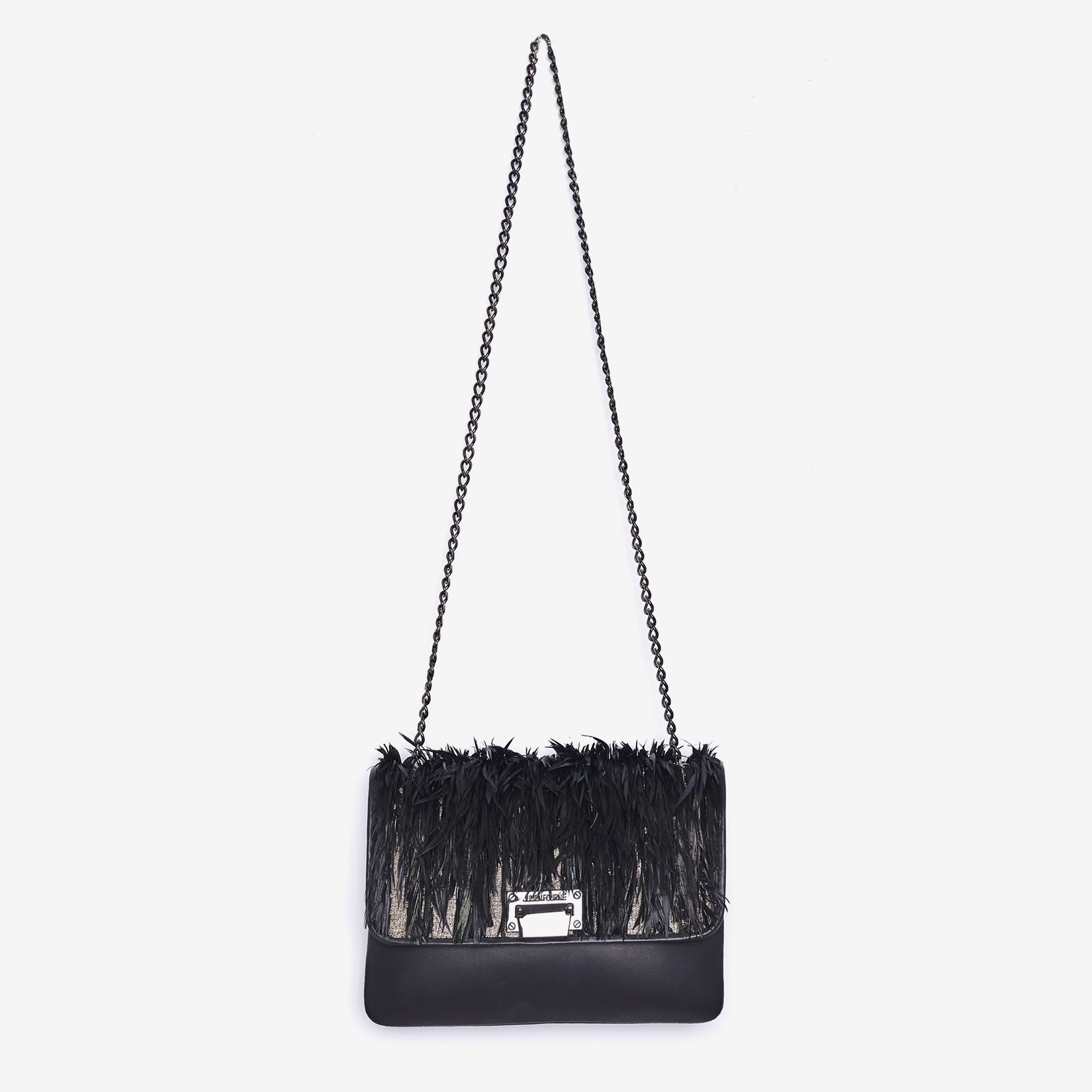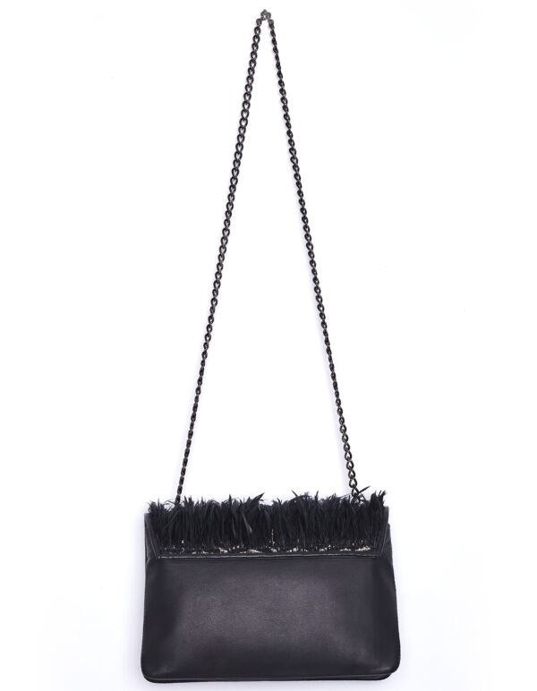 This leather jewel unites the airy lightness of black feathers with the radiance of pure gold: each plume is meticulously hand-embroidered onto a serge weave of genuine gold threads, set against a foundation of leather of unparalleled softness. To the touch, the leather’s fine grain delivers a delicate texture that subtly offsets the warm glimmer of the gold threads as they catch the light.