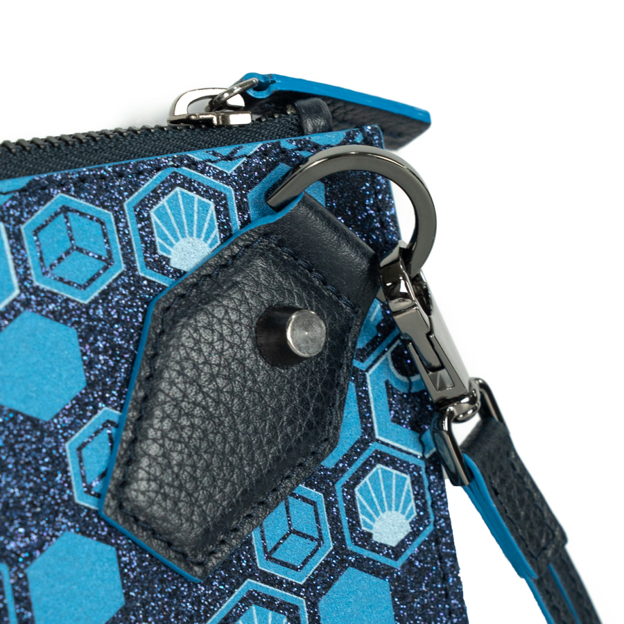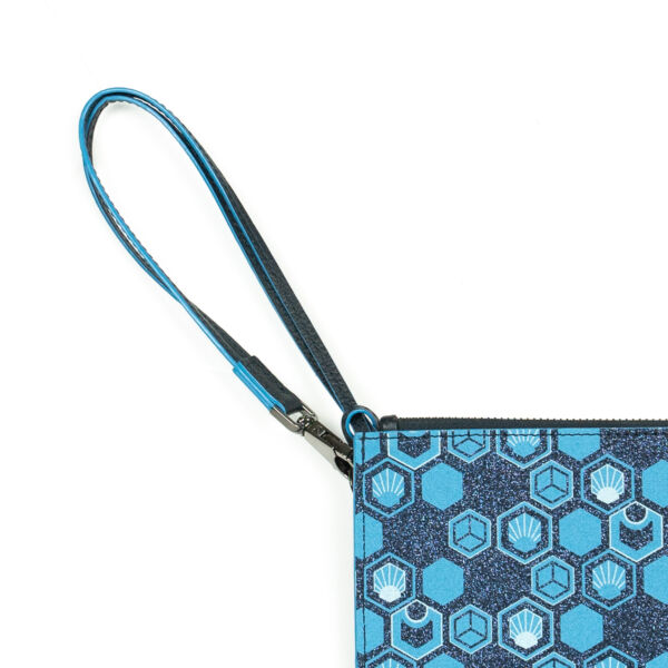 Dive into the most precious night with the Pluton Midnight Blue clutch bag: a mirror-effect coated canvas in deep blue, illuminated by micro-glitter and paired with intense blue grained calf leather.
