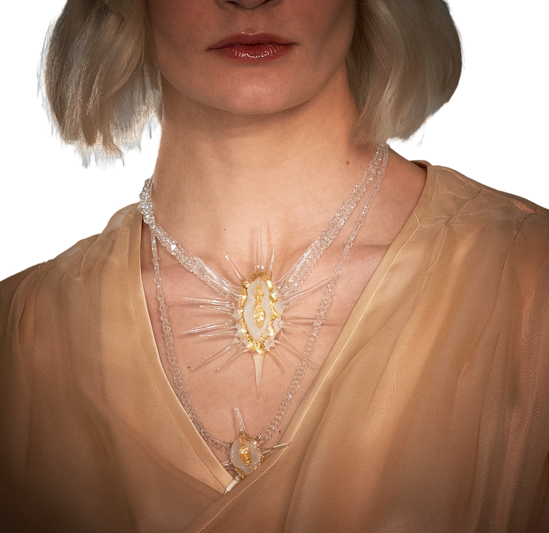 Julien Fournié called on Adrian Colin to bring this line of blown glass jewelry to life.