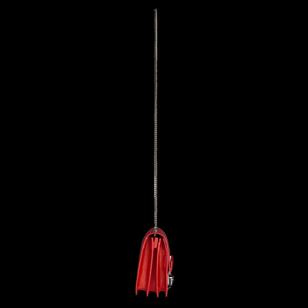 – Versatile carry: subtly gleaming silver chain, detachable for hand carry via an innovative front strap.