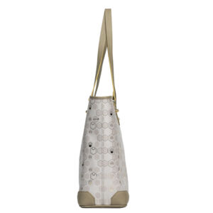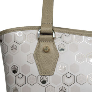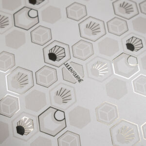 Light-gold coated canvas, silk-screened with the Hexagon monogram in soft-white ink