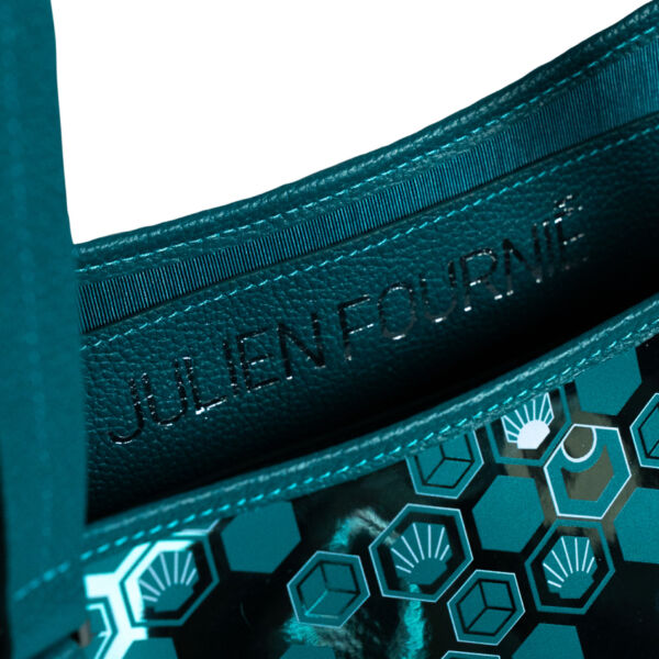 Revealed on the runway of the First Sunshine Haute Couture show, this oversized tote embodies Julien Fournié’s solar-chic quintessence. Crafted from an exclusive mirror-effect coated canvas, it captures light like a daytime halo and is trimmed with the Hexagon monogram—his geometric, poetic signature—for a subtly irresistible relief.